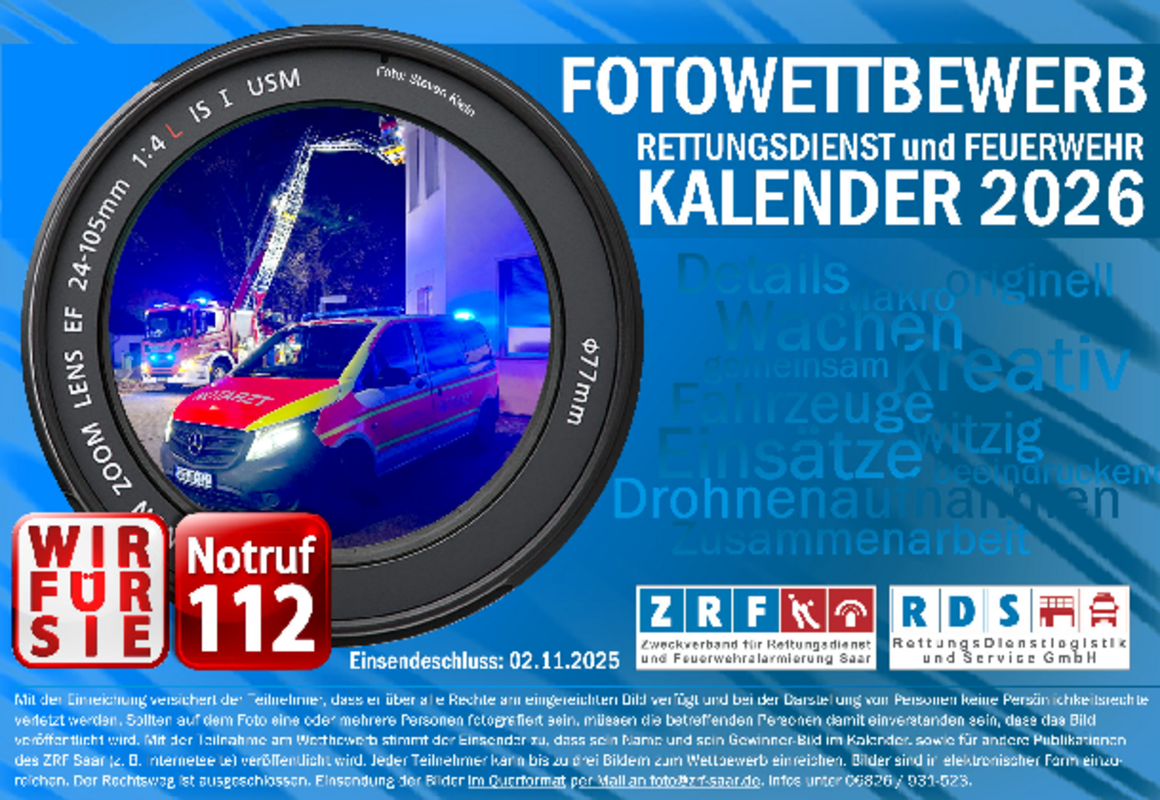 Wir freuen uns auf interessante, witzige und kreative Fotos, evtl. auch unter Rückgriff auf die eigenen Archive für einen attraktiven Bildkalender für das Jahr 2026 an foto@zrf-saar.de.