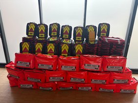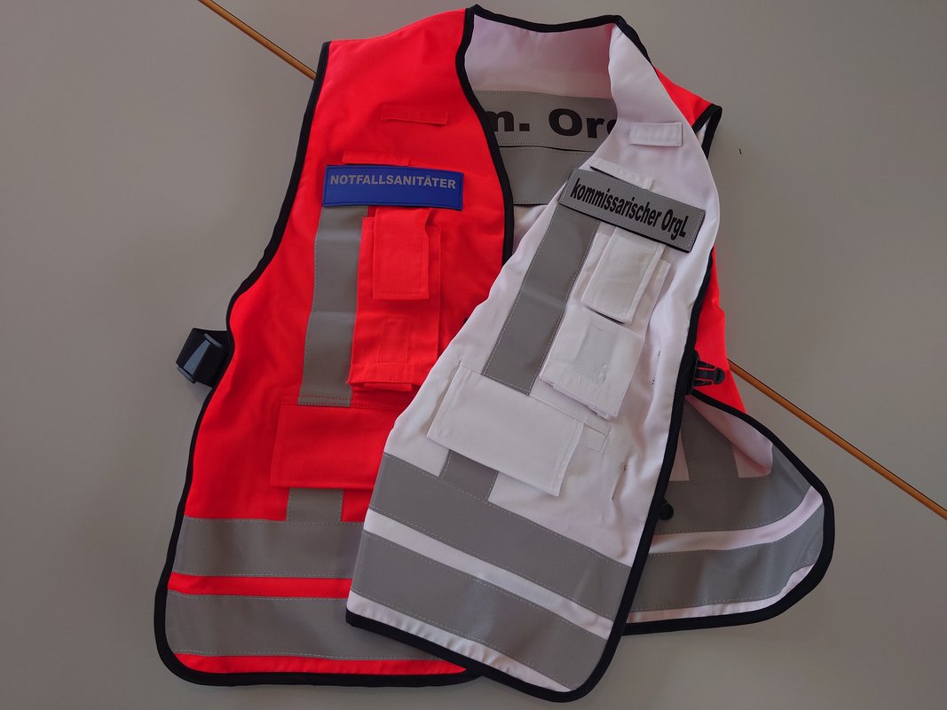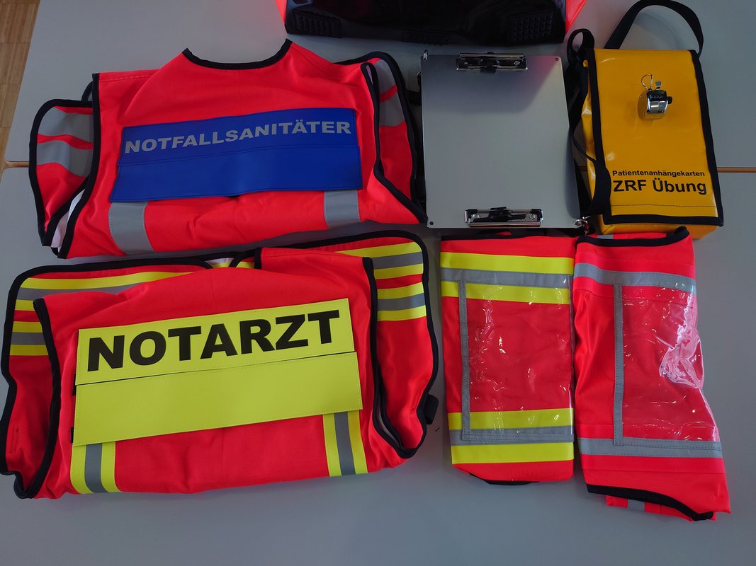 Um all diese Veränderungen im Einsatz auch möglichst praktikabel umsetzen zu können, wurden nun auch die auf allen Rettungsmitteln des saarländischen Rettungsdienstes schon seit 2012 vorgehaltenen MANV-Taschen umfassend erneuert und ergänzt. So werden nun beispielsweise zur Kennzeichnung von unverletzt betroffenen Personen weiße Kennzeichnungsbänder mitgeführt, es wurden Umhängetaschen für Patientenanhängekarten gefertigt sowie neue Kennzeichnungswesten für Funktionsträger beschafft. Letztere sind auf den notarztbesetzten Rettungsmitteln als Wendeweste ausgeführt, sodass in jeder Einsatzphase eine passende Kennzeichnung der Kräfte möglich ist ohne Zeit zu verlieren um eine neue Kennzeichnung zu holen.