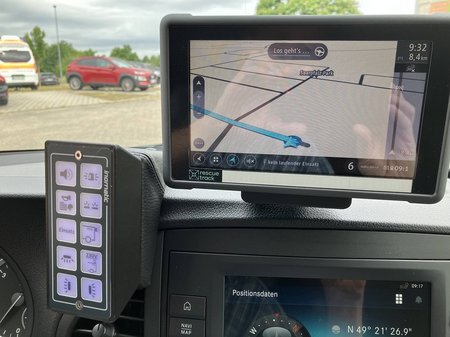 Ebenso können die Einsatzdaten einschließlich der genauen Position (georeferenzierte Positionsdaten) des Einsatzortes an den Rechner übermittelt werden, der diese in das Navigationsprogramm übernimmt.